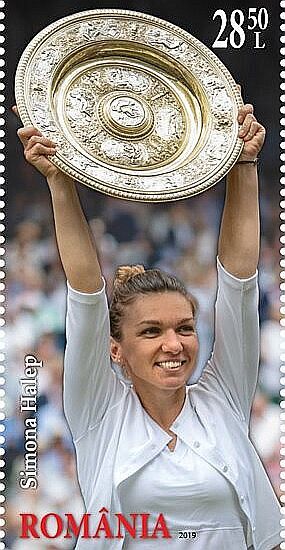 Simona Halep, foto: rumænsk Wimbledon frimærke